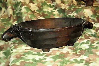 Vintage hand carved wood Large bowl w/ 4 legs/feet- bison, steer, buffalo/bull