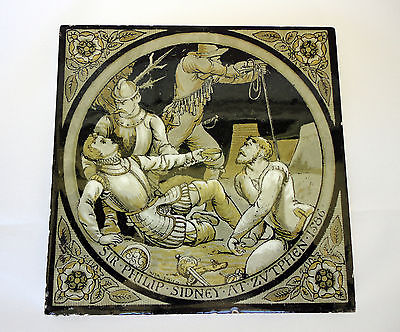 1880's Minton Hollins Stoke Upon Trent Sir Philip Sidney Zutphen 6" Art Tile