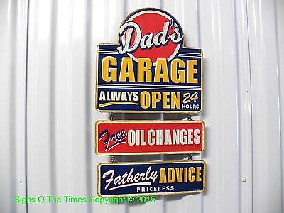 Dads Garage 3D Embossed Metal Deco Father Dad Chevy Ford Mopar Chrysler Hemi USA
