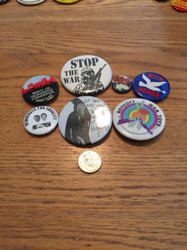 Title (ebay affiliate link): Vintage 1960's To 1980's Cause Protest War March Hippie Gay Sex Pot Pinback Lot