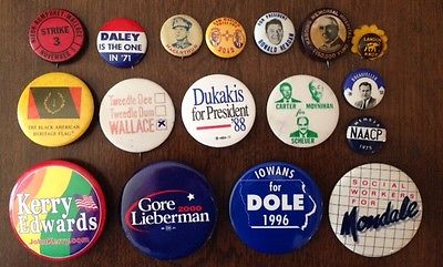 Title (ebay affiliate link): Great Lot of 31 Various Political Campaign and Cause/Social Issue Pinbacks