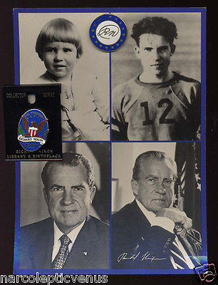 Title (ebay affiliate link): 1994 Richard M. NIXON Library Birthplace POSTCARD & 2 Enamel PINS Yorba Linda CA