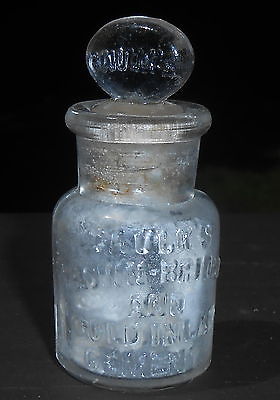 Antique GAULK'S Dental Cement Bottle Embossed Glass Bottle & Glass Stopper