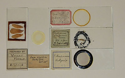 Antique Microscope Slides - group of 5 slides - Diatoms, Flower, etc...