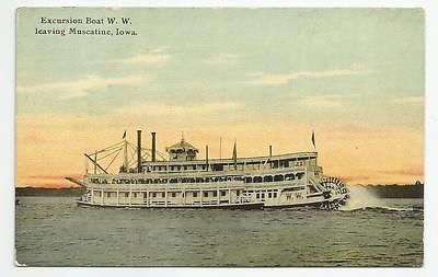 1911 Paddlewheel Excursion Steamer WW Leaving Muscatine IA Iowa Postcard