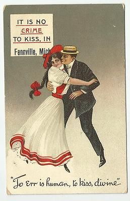 Title (ebay affiliate link): 1910 It's No Crime to Kiss in Fennville MI Michigan Romantic Couple Postcard