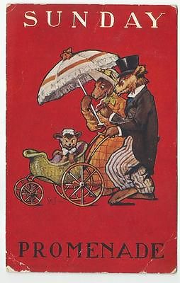 1907 Mama & Papa Teddy Bear Baby Pram Carriage Sunday Promenade Postcard
