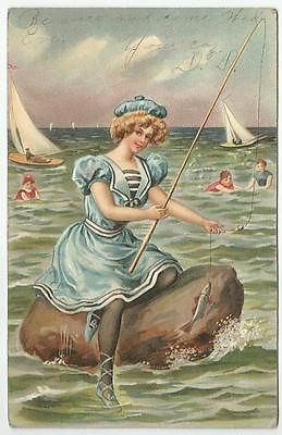 Title (ebay affiliate link): 1906 Bathing Beauty Fishing Sailboats Swimmers Beach Undivided Back Postcard