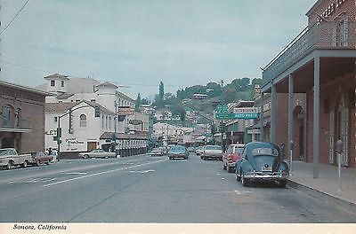 Sonora California Postcard Washington St Volkswagon VW Bug Tuolumne County CA