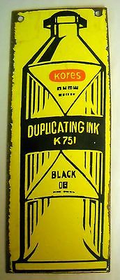 VINTAGE KORES BLACK INK HEAVY PORCELAIN SIGN