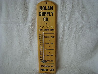 Vintage Advertising Nolan Supply Co. Wood Thermometer "MINT"