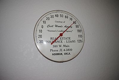 VINTAGE NORMAN OKALHOMA THERMOMETER ADVERTISING SIGN 12" GLASS USA!