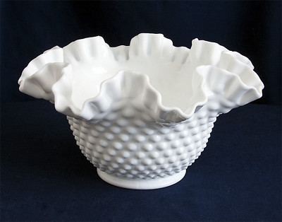 Fenton White Hobnail Milk Glass 9" Crimped Bowl 3924
