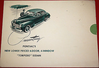 Title (ebay affiliate link): 1941 PONTIAC DeLuxe Torpedo Metropolitan Sedan Mailer ORIGINAL sales Brochure