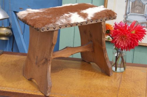 Title (ebay affiliate link): Antique Pine Milking Stool Cow Hide Top Vintage Arts & Crafts Stool Rustic Chic