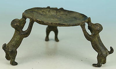 CHINESE OLD BRONZE COLLECTABLE HANDWORK CARVED DOGS OIL LAMP CANDLE STICK STATUE