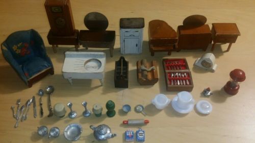 Title (ebay affiliate link): LOT OF VINTAGE ANTIQUE DOLLHOUSE FURNITURE AND ACCESSORIES MIXED LOT