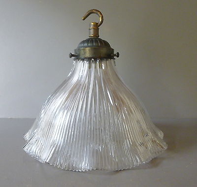 ANTIQUE VINTAGE HOLOPHANE GLASS LAMPSHADE LAMP SHADE WITH GALLERY FITTING