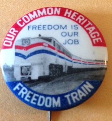 Title (ebay affiliate link): Our Common Heritage "Freedom Is Our Job" Freedom Train Pin Pinback Button