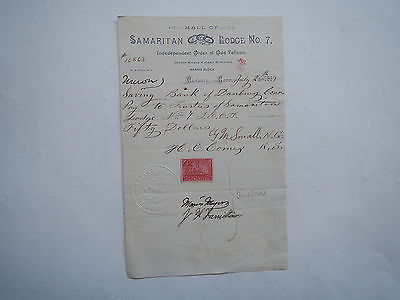 Antique Document 1899 Samaritan Lodge No. 7 Danbury Connecticut Paper CT Old VTG