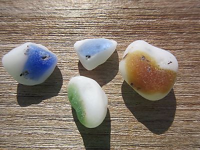 Sea Beach Glass. 4 med pcs. Milk Glass & Sea Glass "Bonfires". Rounded.