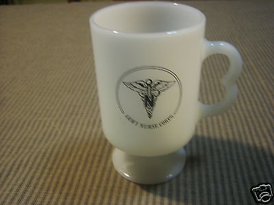 VINTAGE FEDERAL GLASS NURSES ARMY CORPS MILK GLASS MUG