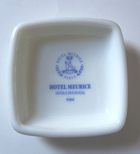 Vintage Hotel Meurice Ashtray Trinket Tray Square Milk Glass Excellent Paris