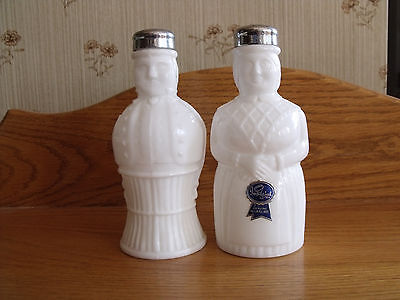 IMPERIAL GLASS MAN AND WOMAN MILK GLASS SALT AND PEPPER SHAKERS