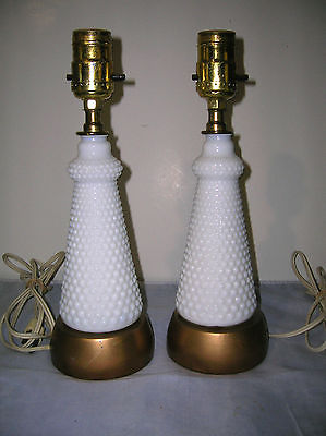 Title (ebay affiliate link): Pair of Vintage Hobnail White Milk Glass Table Lamps Gold Base Mid-Century Retro