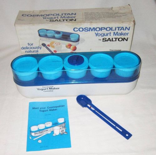 Vintage Salton Cosmopolitan Thermostat Controlled Yogurt Maker w Milk Glass Jars