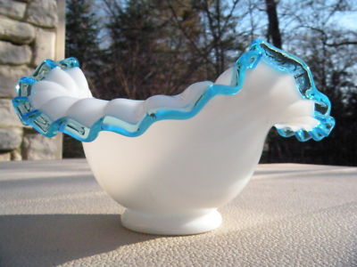 1941 FENTON Art Glass AQUA Crest BOWL Milk Glass