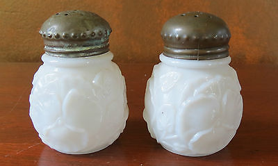 Consolidated Glass EAPG White Milk Glass Pansy Salt & Pepper Shaker Set
