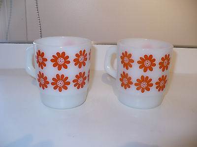 Title (ebay affiliate link): Set 2 Vintage Orange Daisy Flower Pattern Milk Glass Fire King Stackable Mugs