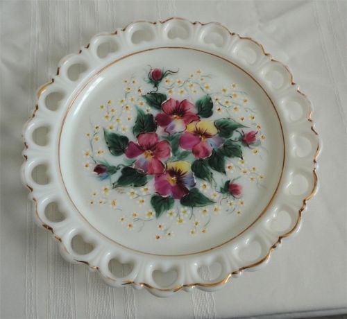 Title (ebay affiliate link): VINTAGE HP LOUISE PIPER 13" milk glass PLATE W/OPEN EDGE ooak signed!