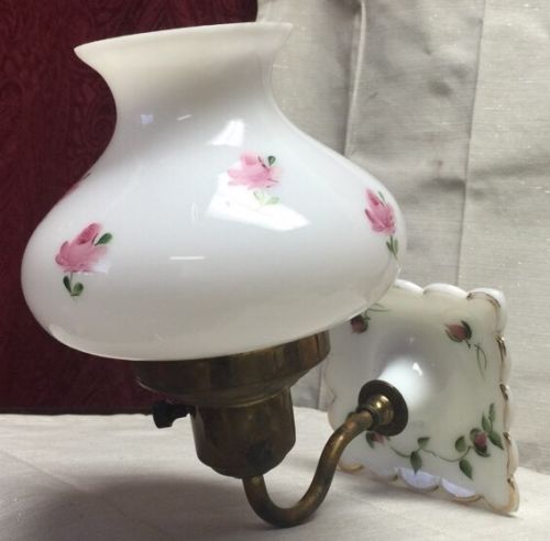 Title (ebay affiliate link): Vintage White Milk Glass Hand Painted Electric Wall Sconce Lamp/Light