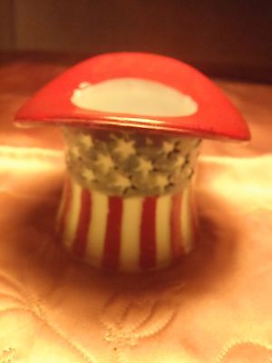 Antique 1908 Milk Glass Red White Blue Top Hat Bank Missing paper top coin slot