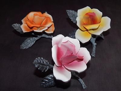 Title (ebay affiliate link): 3 Capodimonte Porcelain Roses ~ Orange, Pink & Yellow with Pewter Stems