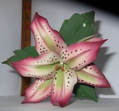 Title (ebay affiliate link): Vintage Porcelain Capodimonte Pink Lilly Flower On Green Leaves