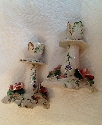Title (ebay affiliate link): 2 Antique Fine Italian Porcelain Candlesticks Holders Marked Italy Capodimonte