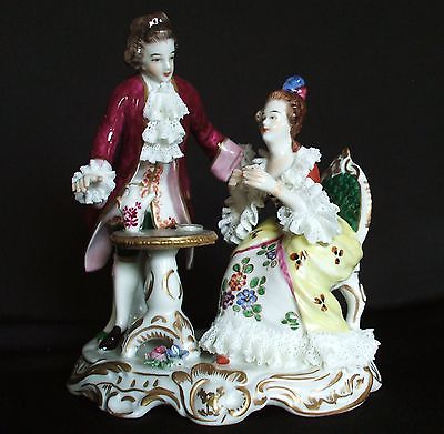 Title (ebay affiliate link): Antique German Volkstedt Dresden Lace Victorian Couple Figurine Lady Gent Figure
