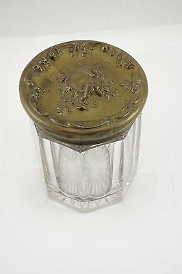 Antique Tobacco Cigar Jar Glass Humidor Art Nouveau Brass Cherub Lid