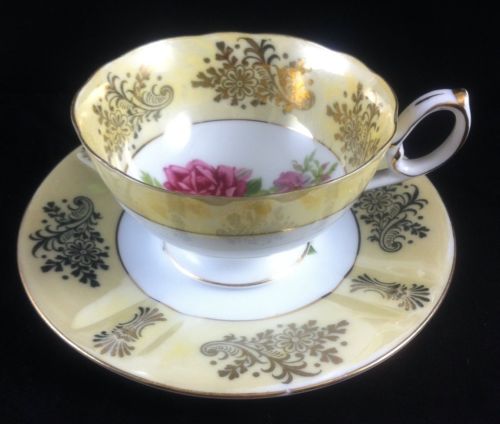Title (ebay affiliate link): Royal Halsey Tea Cup & Saucer Very Fine Yellow, Pink Roses, Gold Trim, Vintage