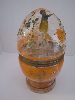 Title (ebay affiliate link): Vintage Coralene Floral Czech Egg Orange Glass Decanter Cordial Set Early 1900s