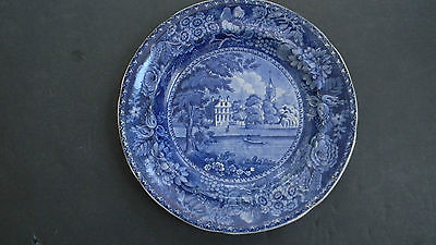 ANTIQUE BLUE & WHITE HISTORIC STAFFORDSHIRE PLATE - R.HALL - FULHAM CHURCH