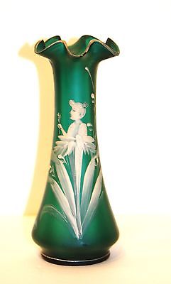 Title (ebay affiliate link): Antique MARY GREGORY deep green glass vase, portrait woman in white - excellent