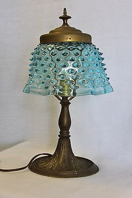 Blue glass shade Bronze Ceiling light Lamp Art Deco antique