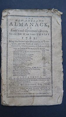 1782 - THE NEW ENGLAND ALMANACK by ISAAC BICKERSTAFF - REVOLUTIONARY WAR ALMANAC