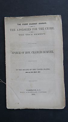 Title (ebay affiliate link): 1856 - THE CRIME AGAINST KANSAS THE APOLOGIES... SPEECH by CHARLES SUMNER