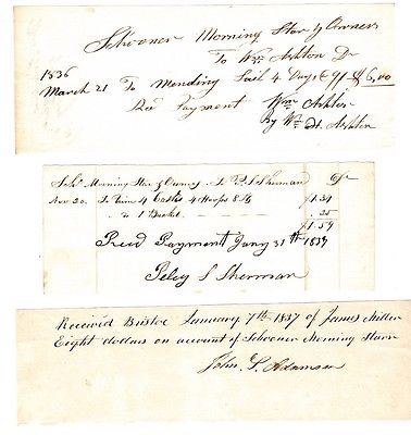 1830s, Schooner Morning Star, Providence, Rhode Island, receipt grouping,