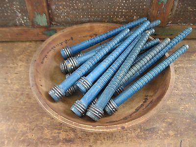Title (ebay affiliate link): 14 Antique Wood Textile Mill Bobbins Original Blue Stain
